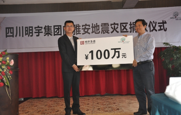 2013年4月,向雅安地震災區捐款100萬元支援災區重建家園。